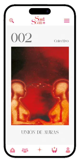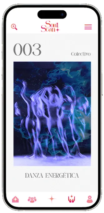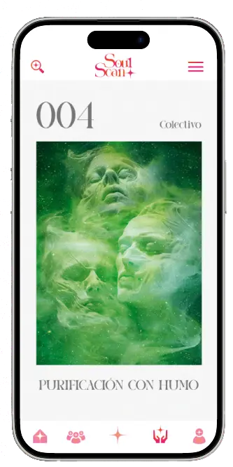 En nuestra aplicación Soul Scan, además de explorar el aura personal y las energías de conexión, diseñamos una sección dedicada a rituales, concebida como una guía diaria para fomentar prácticas energéticas tanto individuales como colectivas. Cada día, la plataforma sugiere cuatro rituales individuales y cuatro colectivos. Cada sugerencia incluye un texto detallado sobre cómo llevar a cabo el ritual y se complementa con una carta personalizada diseñada para representar simbólicamente la intención del ritual.